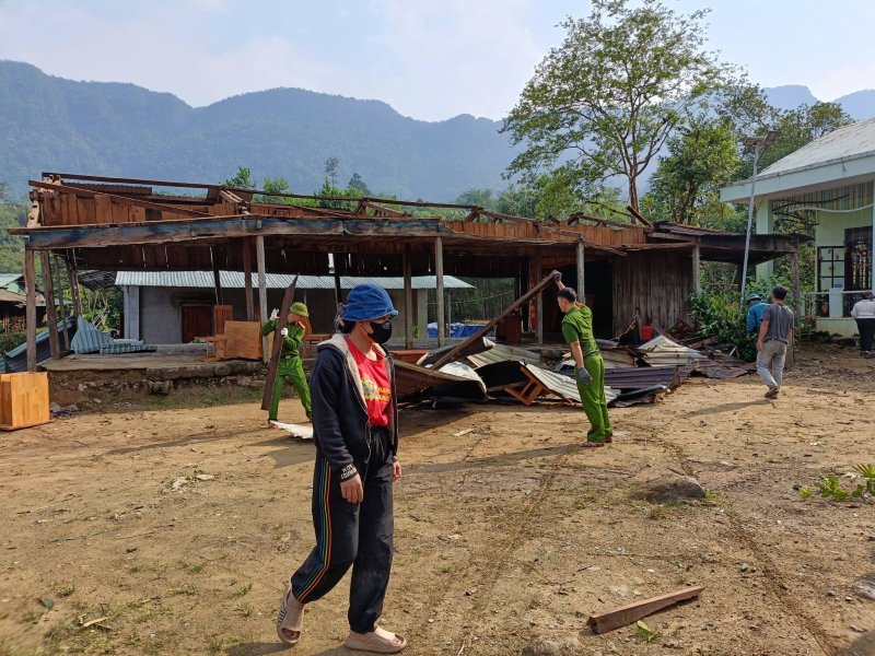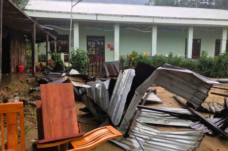Theo thống kê ban đầu, thiên tai đã làm 19 nhà dân cùng nhà văn hóa thôn và trường học trên địa bàn bị tốc mái, hư hỏng nghiêm trọng.