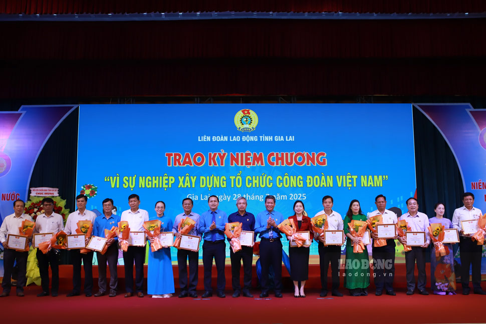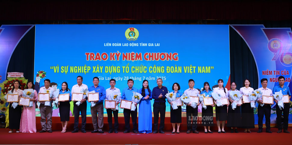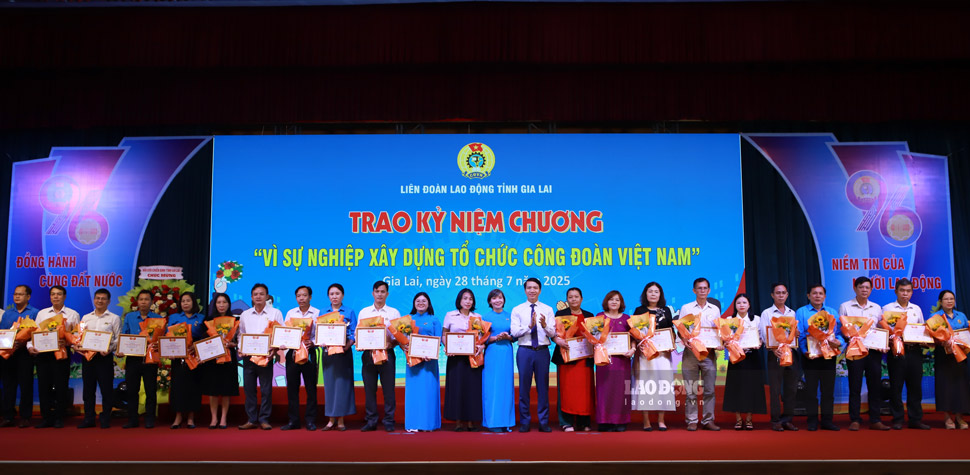 Ngày 28.7, Liên đoàn Lao động (LĐLĐ) tỉnh Gia Lai tổ chức Chương trình kỷ niệm 96 năm Ngày thành lập Công đoàn Việt Nam (28.7.1929 - 28.7.2025) và tặng Kỷ niệm chương "Vì sự nghiệp xây dựng tổ chức Công đoàn Việt Nam".