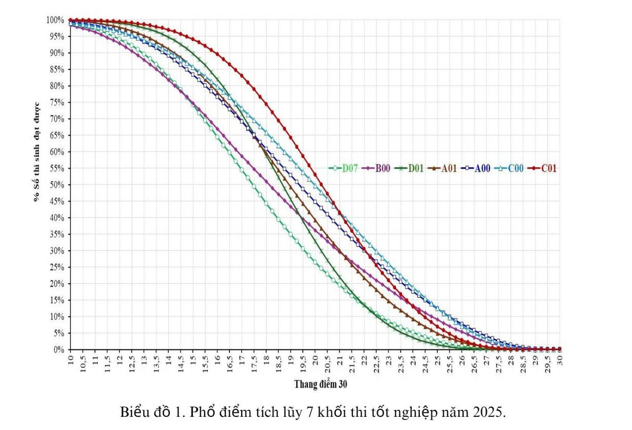 Bộ GD&ĐT công bố đối sánh phổ điểm một số tổ hợp điểm thi THPT năm 2025