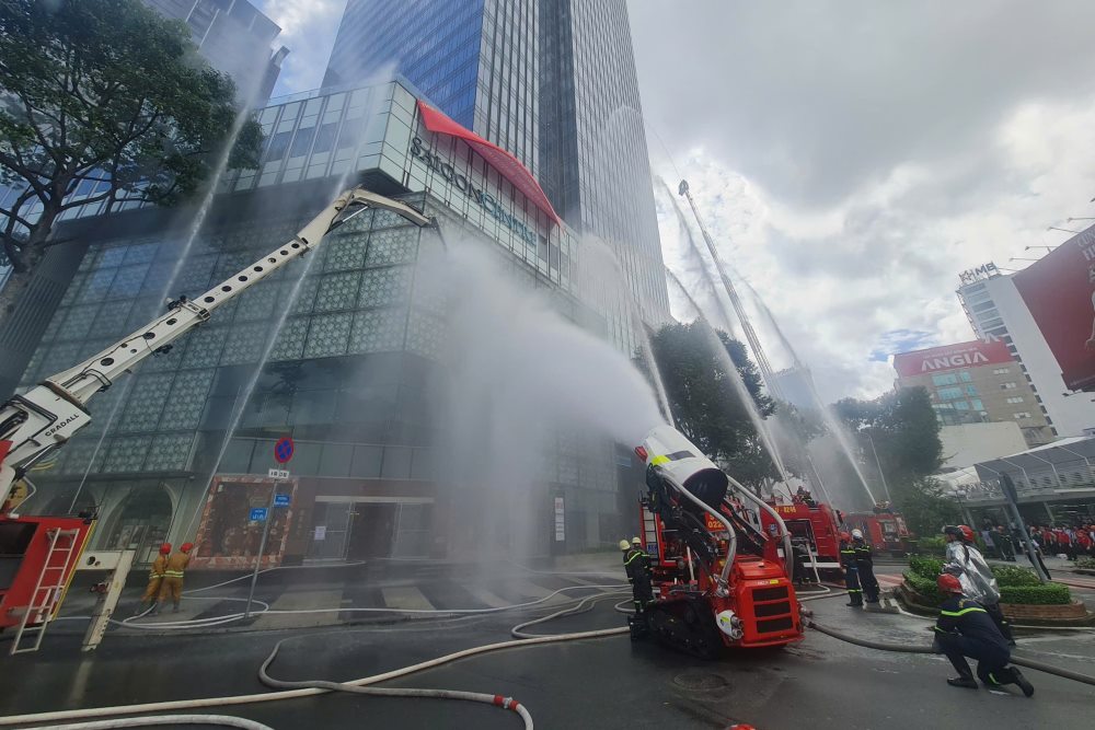 Theo kịch bản giả định, đám cháy bùng phát tại khu vực tầng 5 và tầng hầm B3 của toà nhà Saigon Centre do sự cố chập điện. Khói nhanh chóng lan rộng, khiến hàng nghìn người bên trong phải sơ tán khẩn cấp. Hệ thống báo cháy tự động của toà nhà lập tức được kích hoạt, đội PCCC cơ sở huy động lực lượng tại chỗ tham gia hướng dẫn thoát nạn, cứu người bị mắc kẹt và tổ chức chữa cháy ban đầu.