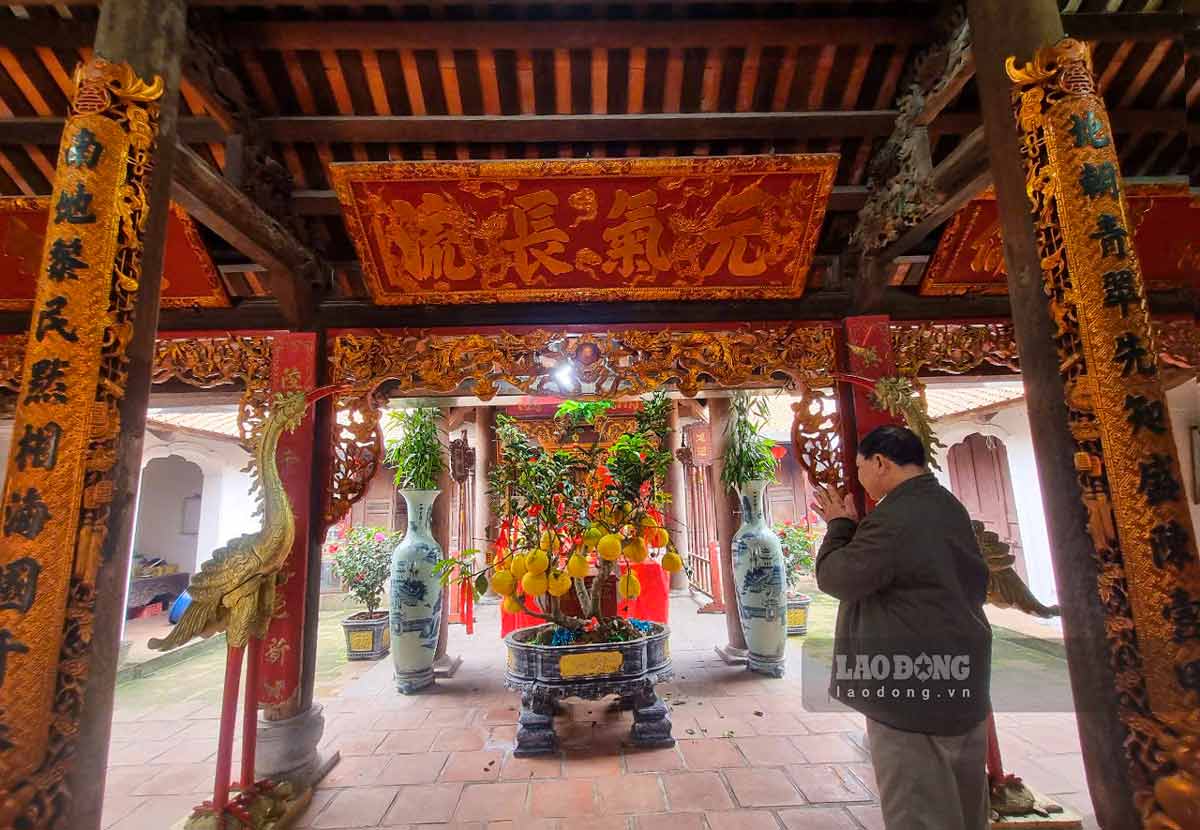 Tòa tiền đường được đại tu vào cuối triều Nguyễn và năm 2018 có 5 gian, 2 trái, 6 bộ vì kèo và 4 hàng cột gỗ lim. Cung đệ nhị 3 gian, hệ thống cửa gỗ lim chân quay chắc chắn. Cửa ở gian giữa có 6 cánh chạm bộ tranh tứ quý "tùng, cúc, trúc, mai", chính giữa là hình lưỡng long chầu nguyệt. Cung cấm với 2 gian, được làm giao mái với cung đệ nhị. Tại cung chính có đặt ngai và bài vị thờ Trạng nguyên Nguyễn Hiền.