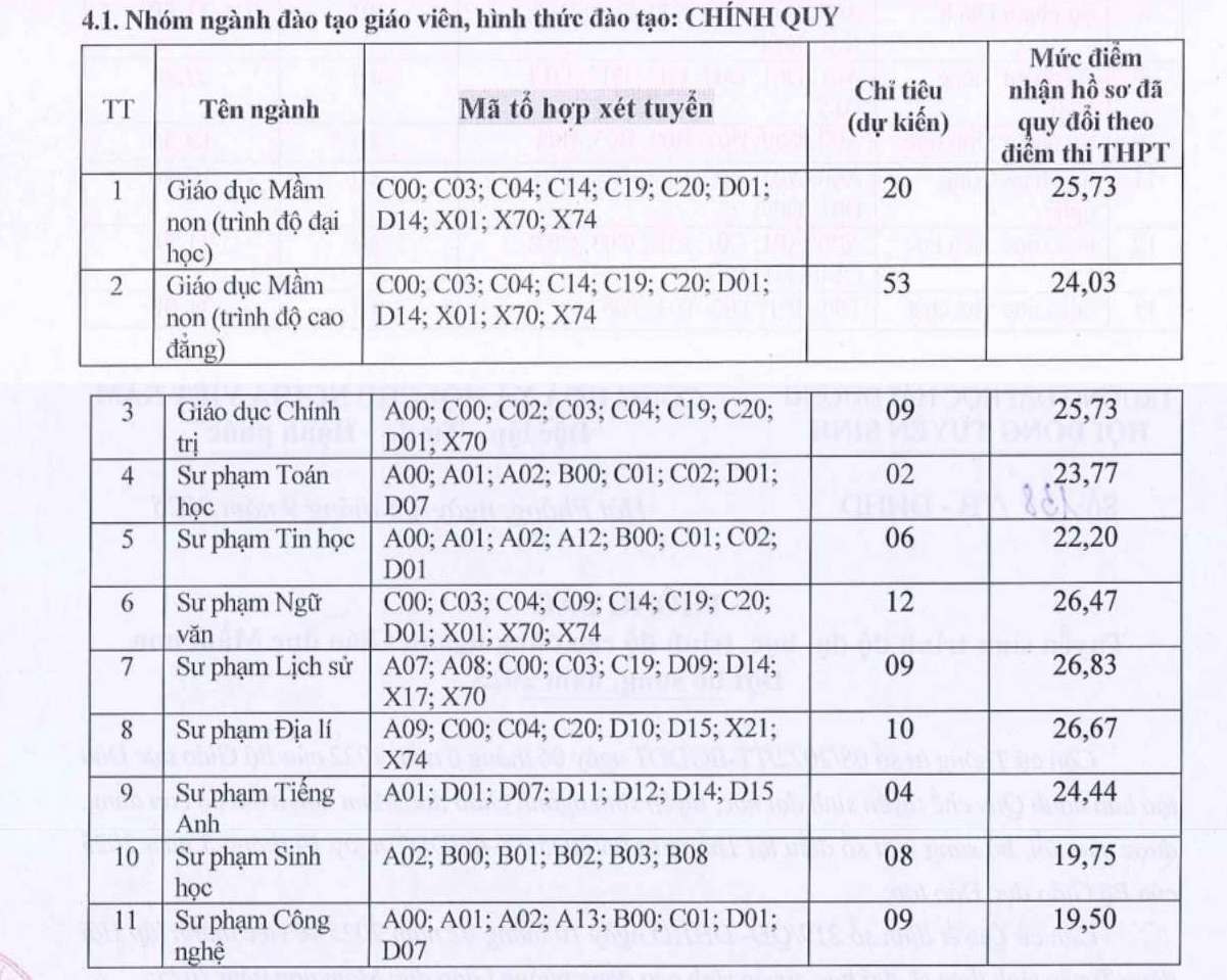 Ngành Sư phạm Toán dự kiến xét tuyển bổ sung 3 chỉ tiêu, ngành Sư phạm Vật lý dự kiến tuyển bổ sung 1 chỉ tiêu, ngành Sư phạm Ngữ văn dự kiến tuyển bổ sung 6 chỉ tiêu...