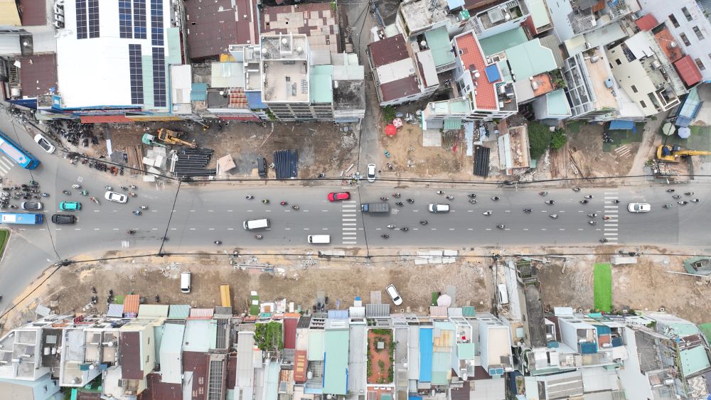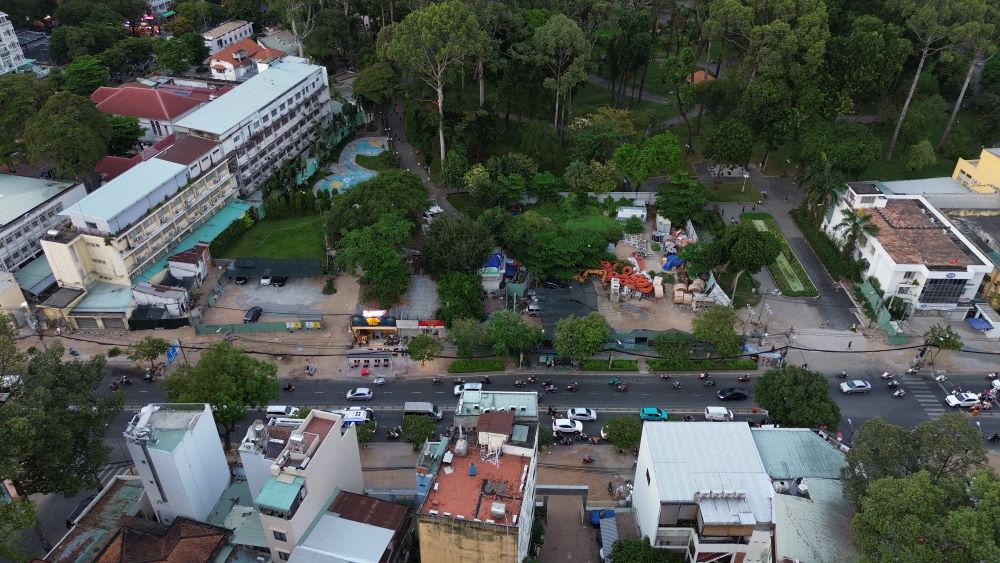 Nhìn từ trên cao mặt bằng metro số 2 trên đường Cách Mạng Tháng 8, Quận 3 và Quận 10 đã được dọn sạch mặt bằng để chuẩn bị khởi công. Ảnh: Anh Tú