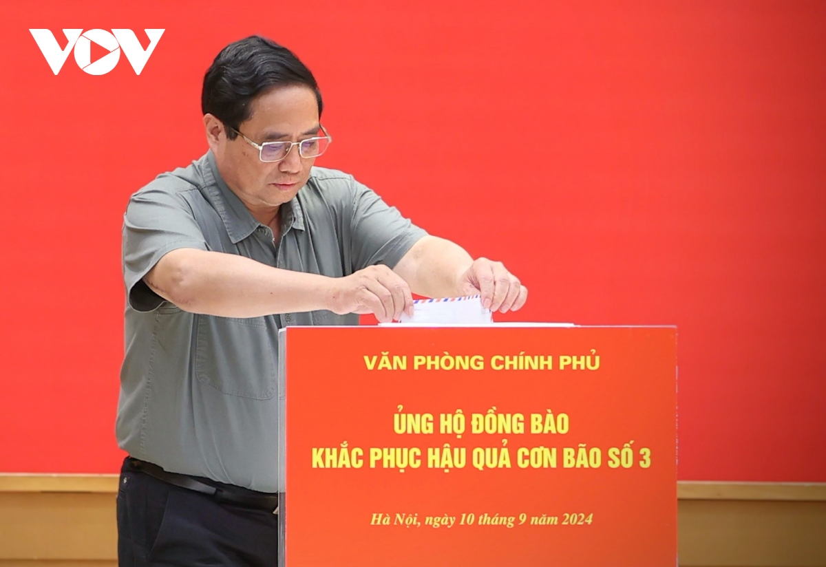 Sáng 3/10, tại Hà Nội, Thủ tướng Phạm Minh Chính cùng các Phó Thủ tướng Chính phủ, Phó Bí thư Đảng ủy Chính phủ, tập thể Văn phòng Chính phủ và cơ quan giúp việc Đảng ủy Chính phủ tham gia ủng hộ đồng bào bị thiệt hại do bão lũ gây ra với tinh thần tương thân, tương ái, tình dân tộc, nghĩa đồng bào.