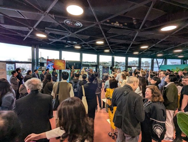 Cục Du lịch Quốc gia Việt Nam chủ trì, phối hợp với Hiệp hội Xúc tiến phát triển Điện ảnh Việt Nam, Quỹ hỗ trợ phát triển du lịch tổ chức chương trình Đêm Điện ảnh Việt Nam tại Cannes. Ảnh: TITC