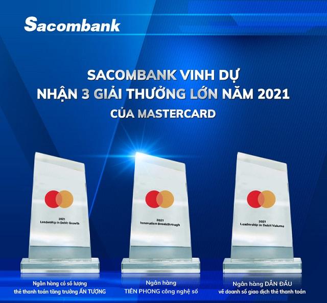 Ngày 30/06/2022, tại Hội nghị Khách hàng thường niên - Mastercard’s Customer Forum, Sacombank vinh dự nhận 3 giải thưởng lớn về hoạt động kinh doanh thẻ và chuyển đổi số từ tổ chức thẻ quốc tế Mastercard.