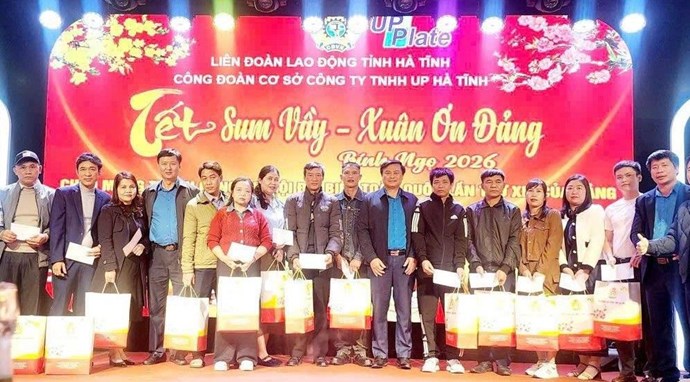 Ngày 26.1, Liên đoàn Lao động tỉnh Hà Tĩnh cho biết, Công đoàn cơ sở Công ty UP Hà Tĩnh vừa tổ chức Chương trình “Tết Sum vầy - Xuân ơn Đảng” gắn với Tiệc tất niên năm 2025, tạo không khí đầm ấm, phấn khởi cho đoàn viên, người lao động nhân dịp Tết Nguyên đán.