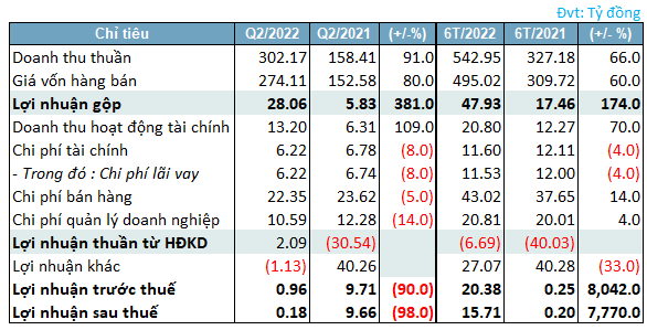 Kết quả hoạt động kinh doanh quý 2/2022 của HHC ![]() Nguồn: VietstockFinance |