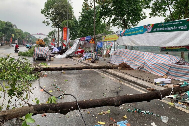 Sáng 23.4, trao đổi với phóng viên Báo Lao Động, ông Nguyễn Đức Hòa - Giám đốc Trung tâm Thông tin xúc tiến du lịch tỉnh Phú Thọ - cho biết, mưa lớn đêm qua đã khiến vải bạt che chắn, cột của một số gian hàng ẩm thực tại sự kiện "Sắc màu du lịch Đất Tổ - Phú Thọ năm 2026" bị tốc, đổ.