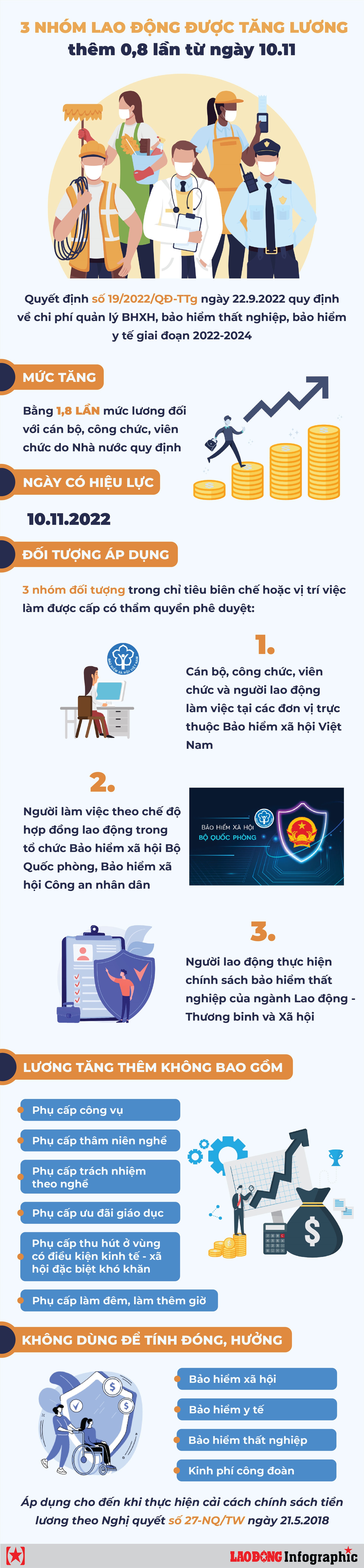 Chi tiết 3 nhóm lao động được tăng lương thêm 0,8 lần từ hôm nay 10.11