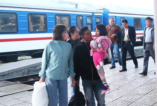 Nghệ An - Chiều 23.1, chuyến tàu Công đoàn mang số hiệu SE16 chở 85 lao động có hoàn cảnh khó khăn về quê ăn Tết cập bến ga Vinh.