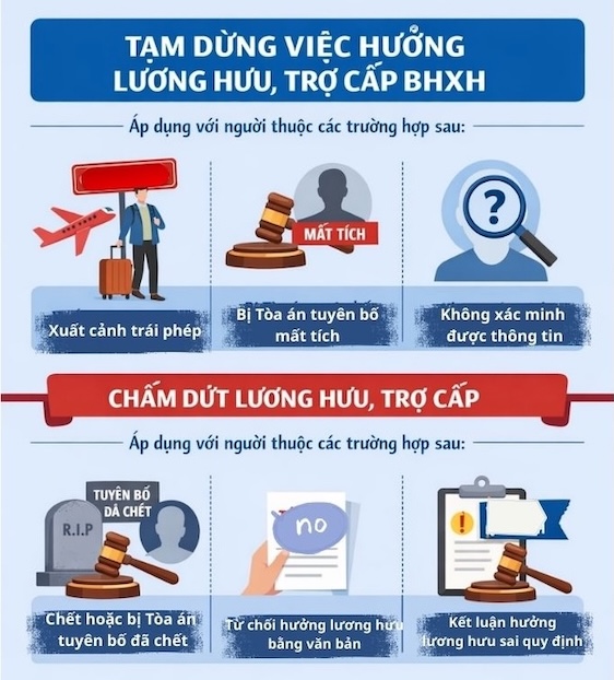 Trường hợp bị tạm dừng hoặc chấm dứt hưởng lương hưu, trợ cấp