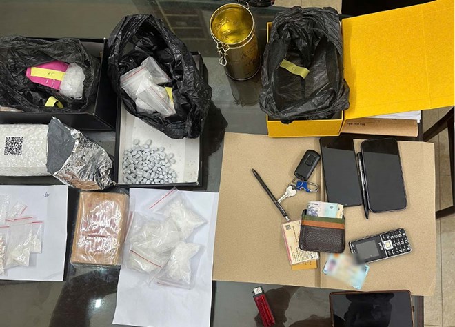 Quá trình bắt và khám xét, lực lượng Công an thu giữ 1,4kg heroin; 2kg ketamine, 1kg ma túy đá; 500 viên ma túy tổng hợp; 100 viên hồng phiến; 5 điện thoại di động cùng một số vật chứng khác có liên quan.