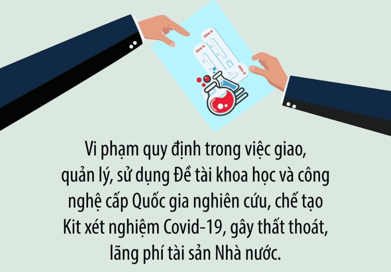 Còn ông Phạm Công Tạc, nguyên Thứ trưởng Bộ Khoa học & Công nghệ bị cáo buộc có hành vi vi phạm quy định của pháp luật trong việc quản lý, sử dụng Đề tài khoa học và công nghệ cấp Quốc gia nghiên cứu, chế tạo Kit xét nghiệm Covid-19, gây thất thoát, lãng phí tài sản Nhà nước, đã phạm vào tội "Vi phạm quy định về quản lý, sử dụng tài sản Nhà nước gây thất thoát, lãng phí", quy định tại Khoản 3, Điều 219 Bộ luật Hình sự năm 2015, sửa đổi bổ sung năm 2017.