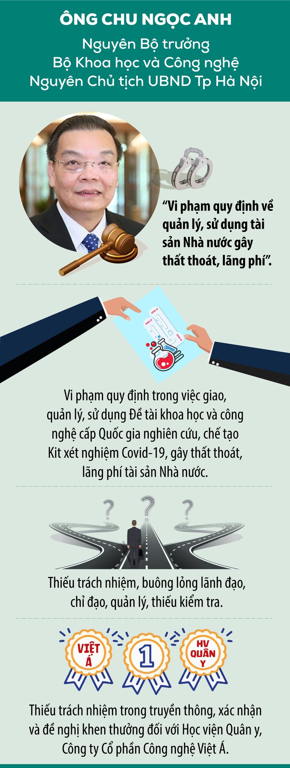 Theo cơ quan điều tra, hành vi sai phạm của ông Chu Ngọc Anh xảy ra ở thời kỳ ông này làm Bộ trưởng Bộ Khoa học & Công nghệ. Nhà chức trách xác định, ông Chu Ngọc Anh có hành vi vi phạm quy định của pháp luật trong việc giao, quản lý, sử dụng Đề tài khoa học và công nghệ cấp Quốc gia nghiên cứu, chế tạo Kit xét nghiệm Covid-19, gây thất thoát, lãng phí tài sản Nhà nước, đã phạm vào tội "Vi phạm quy định về quản lý, sử dụng tài sản Nhà nước gây thất thoát, lãng phí", quy định tại Khoản 3, Điều 219 Bộ luật Hình sự năm 2015, sửa đổi bổ sung năm 2017.