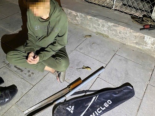 Qua kiểm tra, lực lượng chức năng phát hiện trong túi có một tuýp sắt và hai con dao. Đối tượng khai tên T.C.H. (SN 2010, trú tại Hà Nội).