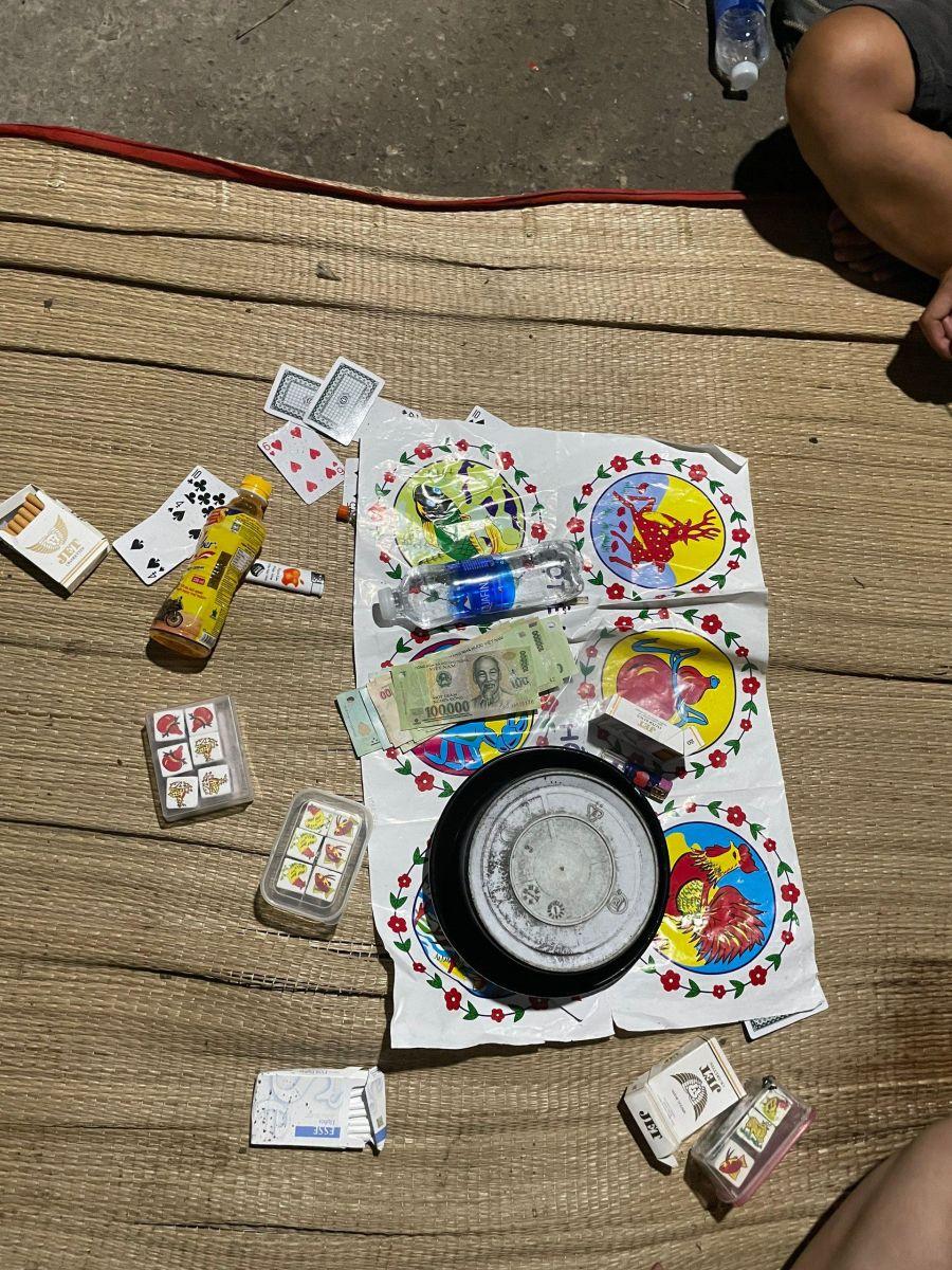 Tại đây, công an thu giữ số tiền gần 14 triệu đồng, 1 bàn cầu, 3 viên xúc xắc, 1 cái dĩa, 1 cái hộp trụ tròn dùng để lắc bầu cua.