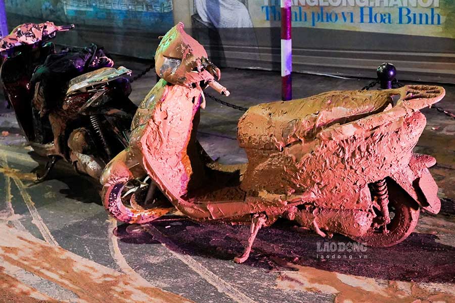 Trước đó vào tối muộn ngày 16.11, tại nút giao Tôn Đức Thắng – Nguyễn Thái Học, mặt đường bị phủ kín bùn đất lầy lội. Tại hiện trường, nhiều người và phương tiện dính đầy bùn đất, quần áo, xe cộ lấm lem.