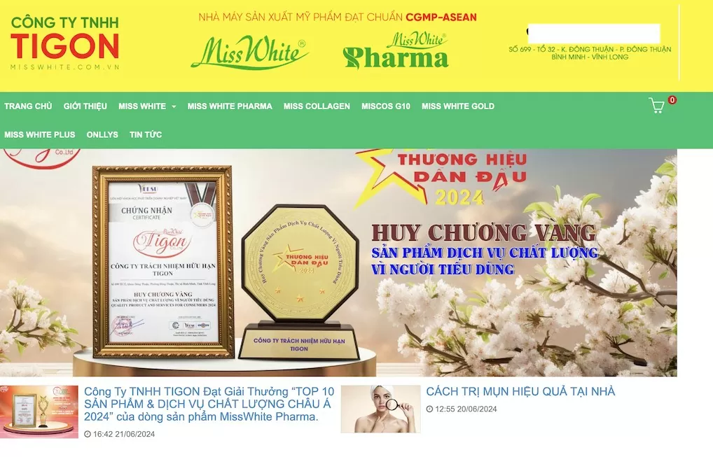 Trên website của được cho của Công ty TNHH Tigo đã giới thiệu vào ngày 15/6/2024 công ty này được vinh danh với giải thưởng "Top 10 sản phẩm và dịch vụ chất lượng Châu Á" tại Giải thưởng thương hiệu tín nhiệm hàng đầu Châu Á 2024 (Asia top brand Award 2024 - Giải thưởng uy tín và danh giá trong ngành mỹ phẩm).