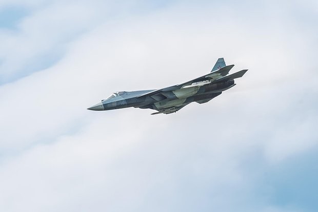| Máy bay chiến đấu thế hệ thứ 5 Su-57 của Nga đã được thử nghiệm động cơ phản lực mới có công nghệ thay đổi vector lực đẩy. Ảnh: Lenta |
