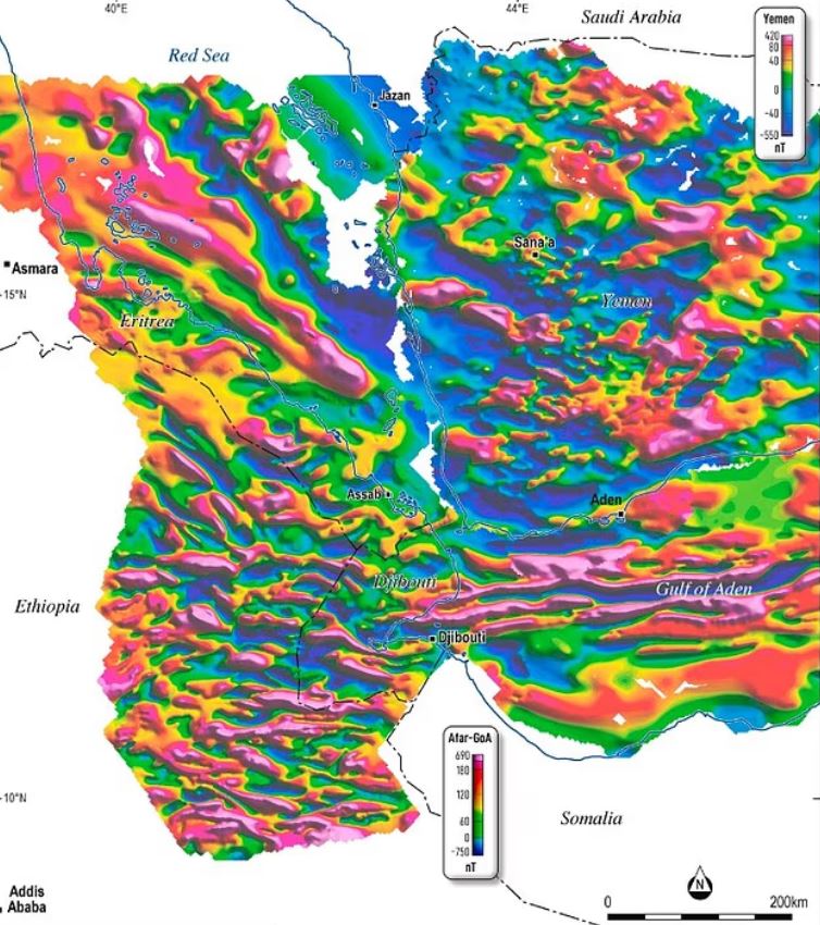 Nghiên cứu công bố trên Tạp chí Khoa học Trái đất châu Phi (Journal of African Earth Sciences) mới đây đã cung cấp thêm bằng chứng về cấu trúc từ tính của vỏ Trái đất tại Afar, cho thấy châu Phi và bán đảo Arab từng tách nhau ra trước, sau đó quá trình đứt gãy mới lan sâu vào lục địa châu Phi và duy trì cho đến ngày nay.