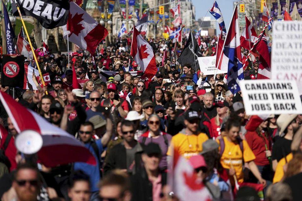 Những người biểu tình đã bày tỏ sự phản đối đối với các quy định về vaccine, các biện pháp hạn chế Covid-19 và chính phủ Thủ tướng Justin Trudeau. Trong khi đó, một nhóm nhỏ khác đã tụ tập bên kia đường đài tưởng niệm và hô vang "về nhà" với những người biểu tình. Cảnh sát phải lập một hàng ngang giữa hai nhóm để tránh xảy ra xung đột.