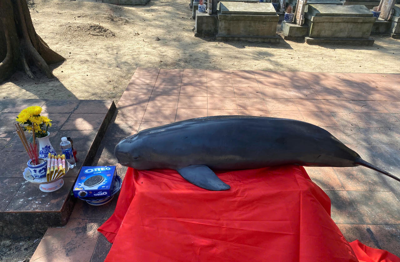 Phát hiện xác cá voi trôi dạt vào bờ biển ở Quảng Trị