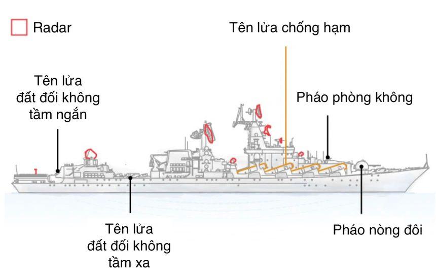 Những vũ khí trên soái hạm Moskva. Đồ họa: Wall Street Journal.