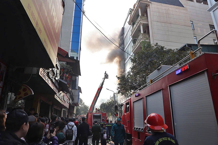Nhận được tin báo của người dân, Trung tâm Thông tin chỉ huy - Công an thành phố Hà Nội đã khẩn trương điều động Đội Chữa cháy và cứu nạn, cứu hộ khu vực số 4 và sự chi viện của các Đội Chữa cháy và cứu nạn, cứu hộ khu vực khác với cán bộ, chiến sĩ, xe chữa cháy, xe thang xuống hiện trường chữa cháy, tìm kiếm cứu nạn.