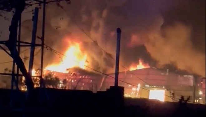 Cháy lớn trong đêm tại khu xưởng nhựa ở Hưng Yên