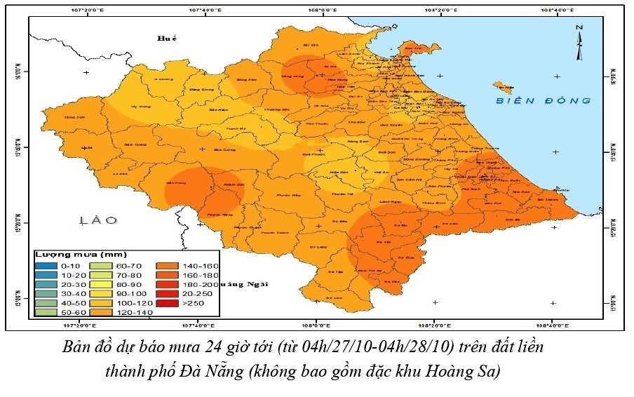 Hiện nay, mực nước trên sông Vu Gia - Thu Bồn đang lên nhanh. Đài khí tượng thủy văn Trung bộ dự báo trong 12h - 24h tới, lũ trên sông Vu Gia - Thu Bồn tiếp tục lên đạt đỉnh ở mức trên mức báo động 3, là mức báo động cao nhất - gây lũ lớn; sông Hàn ở mức trên báo động 2 - lũ trung bình; sông Tam Kỳ ở xấp xỉ mức báo động 1 - lũ nhỏ.
