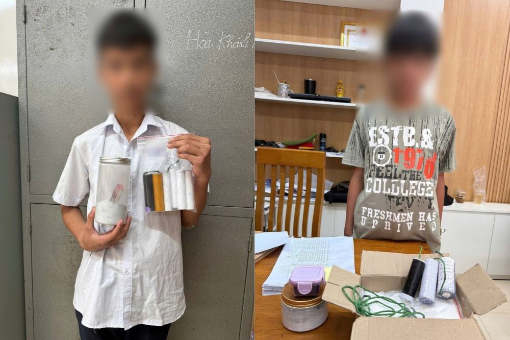 Ngày 27.1, Công an TP Đà Nẵng cho biết, qua theo dõi, Công an phường Hoà Khánh phát hiện 2 học sinh tại 1 trường THCS trên địa bàn là em N.Đ.N.H (sinh năm 2014) và em T.Đ.B (sinh năm 2013) có hành vi tàng trữ nguyên liệu và tự chế tạo pháo nổ xuất phát từ việc xem và làm theo các video hướng dẫn trên mạng xã hội với suy nghĩ đơn giản là “mang lên trường đốt chơi”.