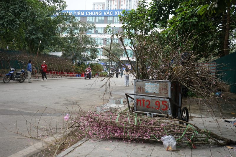 Thanh Hóa - Do một số cây đào bung nở sớm, không có khách mua, tiểu thương đã chặt bỏ cành, để chỏng chơ bên hè phố.