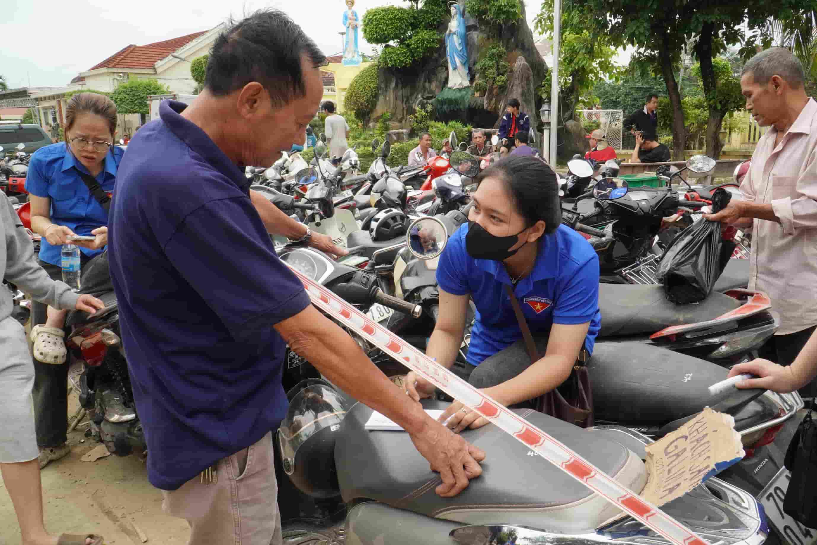 Dòng người tiếp tục đưa xe tới các điểm sửa chữa khiến bãi giữ xe quá tải. Tình nguyện viên phải đánh số xe, ghi tên và số điện thoại để thuận tiện liên lạc khi xe hoàn thành sửa chữa trong hôm nay và ngày mai.
