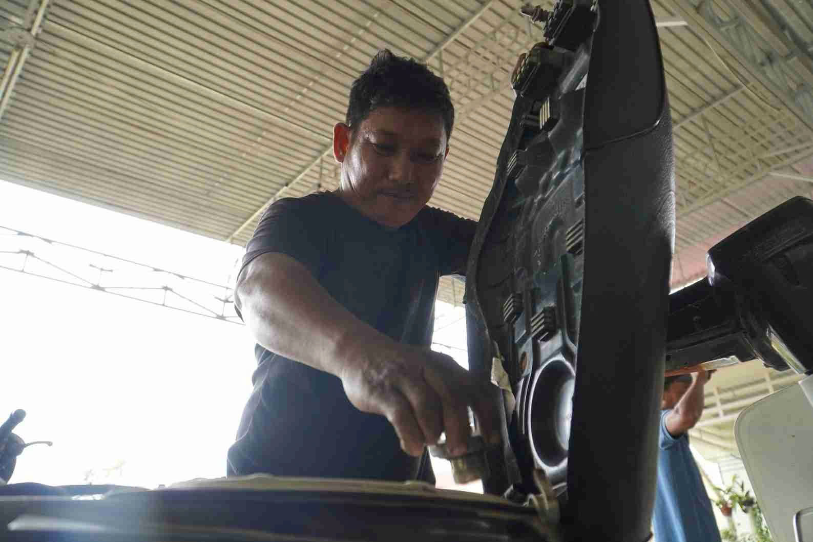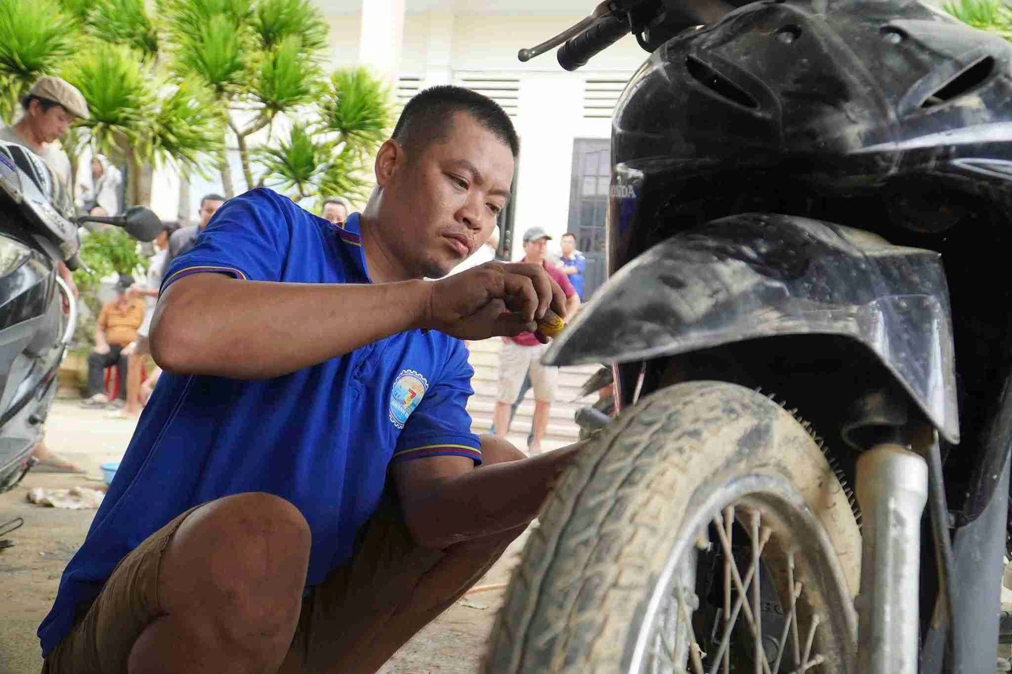 Anh Thành – một thành viên của đội sửa xe tình nguyện – cho biết, với số lượng xe cần sửa rất lớn nên đội tình nguyệnchỉ hỗ trợ xử lý các trường hợp xe bị ngập nước, thay dầu, vệ sinh hệ thống nhiên liệu, thay bu-gi và lọc gió miễn phí. Anh em làm việc liên tục và cố gắng sửa xe nhanh nhất cho người dân.