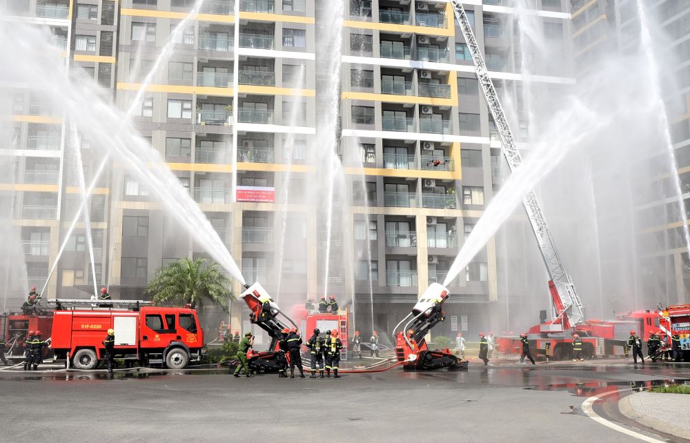 Ngày 14.11, tại Khu dân cư và Công viên Phước Thiện thuộc dự án Vinhomes Grand Park, Công an TPHCM phối hợp Ban Quản lý khu đô thị tổ chức diễn tập phương án chữa cháy, cứu nạn, cứu hộ quy mô lớn nhất năm 2025, tại tòa nhà GH6, công trình cao tầng tiêu biểu của khu đô thị hiện đại phía Đông Thành phố.