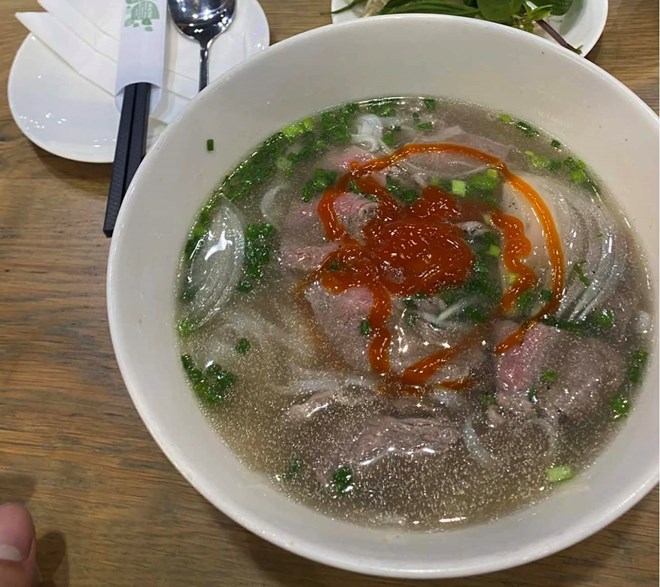 Tại đây, quán phục vụ các món phở bò, phở gà và phở đặc biệt. Hành khách cho biết do từng ăn phở ở nhiều sân bay trên thế giới và cho rằng mức giá sẽ không chênh lệch quá lớn so với bên ngoài nên không hỏi trước.