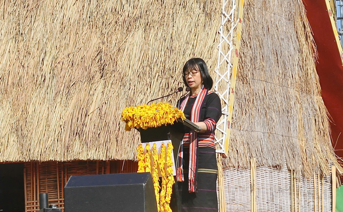 | Bà Nguyễn Thị Thanh Lịch - Phó Chủ tịch UBND tỉnh Gia Lai - Trưởng Ban tổ chức lễ hội phát biểu khai mạc tuần lễ hoa dã quỳ |