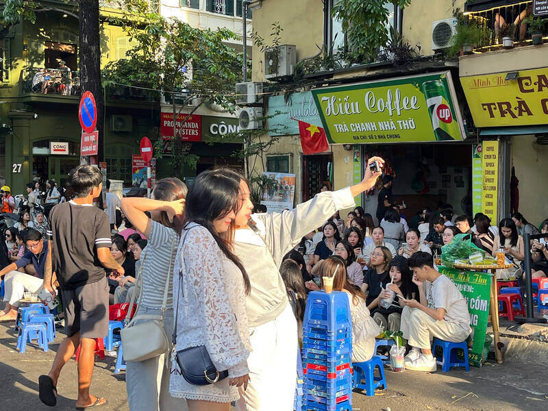 Bạn Phan Khánh Huyền (Hà Nội) cùng hội bạn tới check-in tại Nhà thờ Lớn vì nơi đây đã trở thành một điểm đến quen thuộc mỗi mùa thu. Tổ hợp trà chanh, cà phê, nhà hàng... quanh nhà thờ là điểm ăn chơi nổi tiếng của giới trẻ.