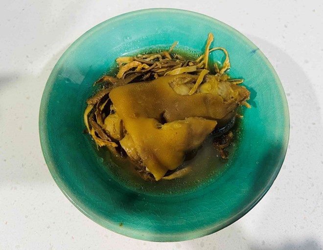 Canh măng khô nấu móng giò heo là món ăn hấp dẫn khi thời tiết lạnh nhưng người bị gút và tăng huyết áp không nên ăn.
