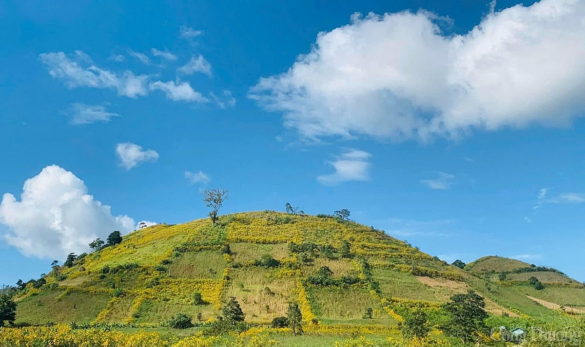 | Hoa dã quỳ nhuộm vàng núi lửa Chư Đang Ya như chào mừng du khách gần xa tới với mảnh đất Gia Lai xinh đẹp. |