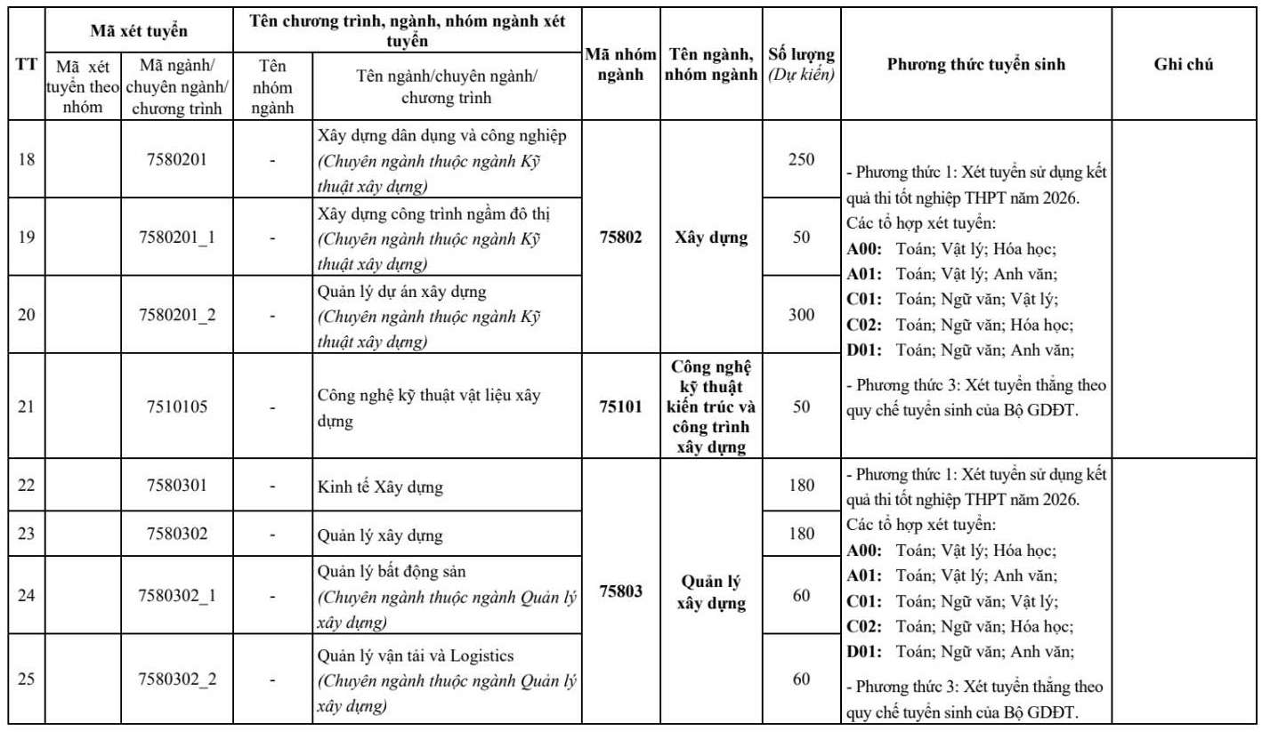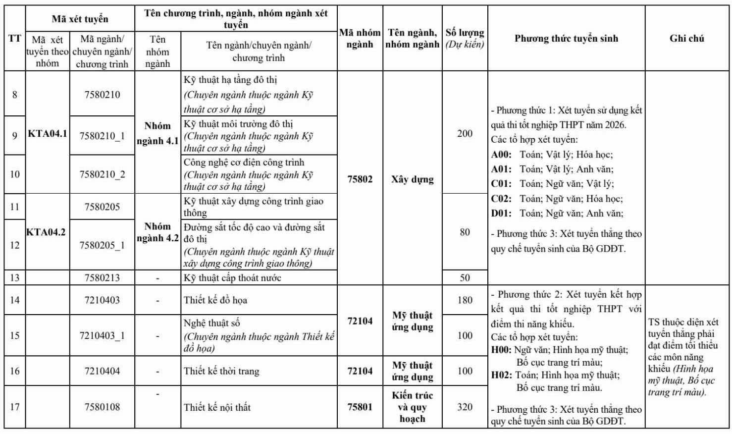 Trường Đại học Kiến trúc Hà Nội vừa công bố thông tin tuyển sinh dự kiến đại học chính quy năm 2026. Cụ thể như sau:
