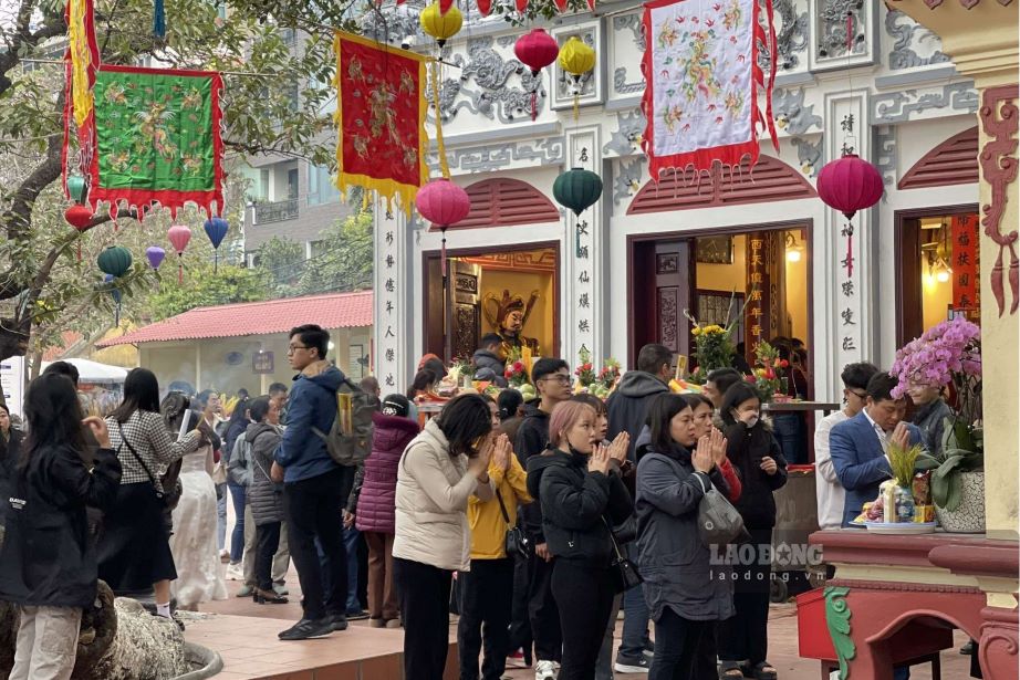 Dù đã kết thúc kì nghỉ Tết Nguyên đán 2025, Phủ Tây Hồ vẫn thu hút rất đông khách đến chiêm bái. Ảnh: Nguyễn Đạt