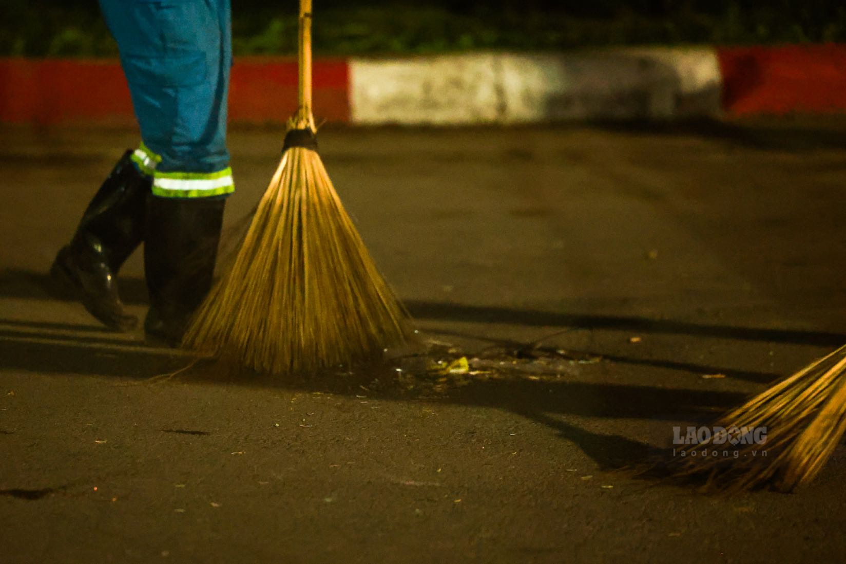 Tại khu vực trung tâm, tiếng chổi tre, tiếng xe chuyên dụng hòa vào không khí đêm muộn. Các nhóm công nhân làm việc liên tục, chia nhau từng đoạn đường, vỉa hè để đảm bảo việc dọn dẹp được hoàn tất sớm nhất.