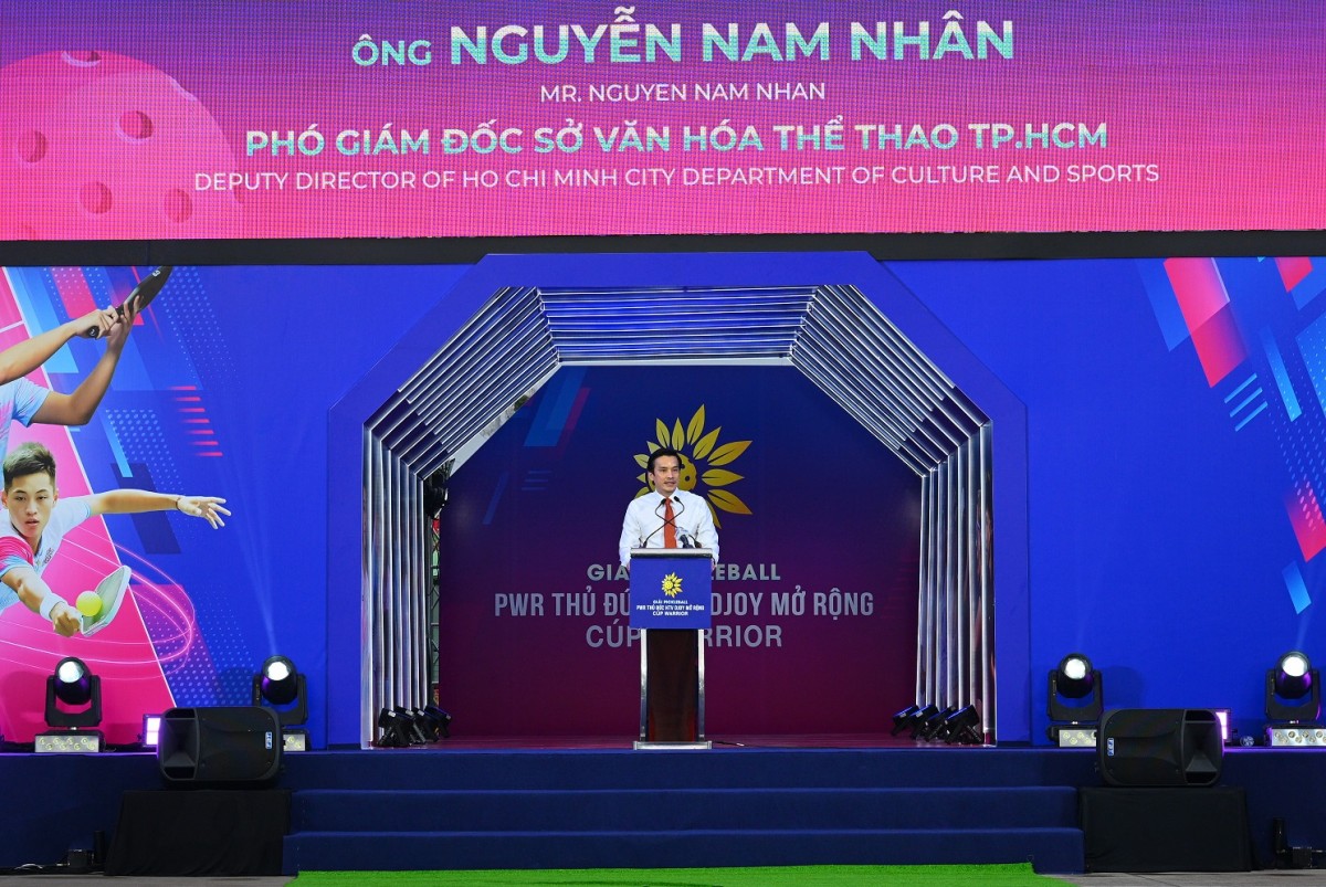 Phát biểu chúc mừng, ông Nguyễn Nam Nhân - Phó Giám đốc Sở Văn hóa và Thể thao TP.HCM chia sẻ, TP.HCM rất vinh dự chào đón các vận động viên đến từ 19 quốc gia trên thế giới cùng các tỉnh thành trong cả nước tham gia. Ông hy vọng, giải pickleball PWR Thủ Đức HTV DJOY mở rộng - Cúp WARRIOR sẽ là sân chơi thể thao xứng tầm, phù hợp với vị thế một thành phố lớn của vùng kinh tế trọng điểm phía Nam và cả nước. Đồng thời, ông kỳ vọng giải đấu sẽ đáp ứng được nhu cầu rèn luyện sức khỏe và niềm đam mê thể thao của đông đảo người dân, đặc biệt là những người yêu thích bộ môn pickleball.