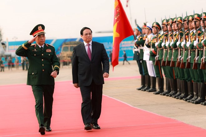 Thủ tướng Chính phủ Phạm Minh Chính duyệt đội danh dự Quân đội nhân dân Việt Nam. Ảnh: Hải Nguyễn