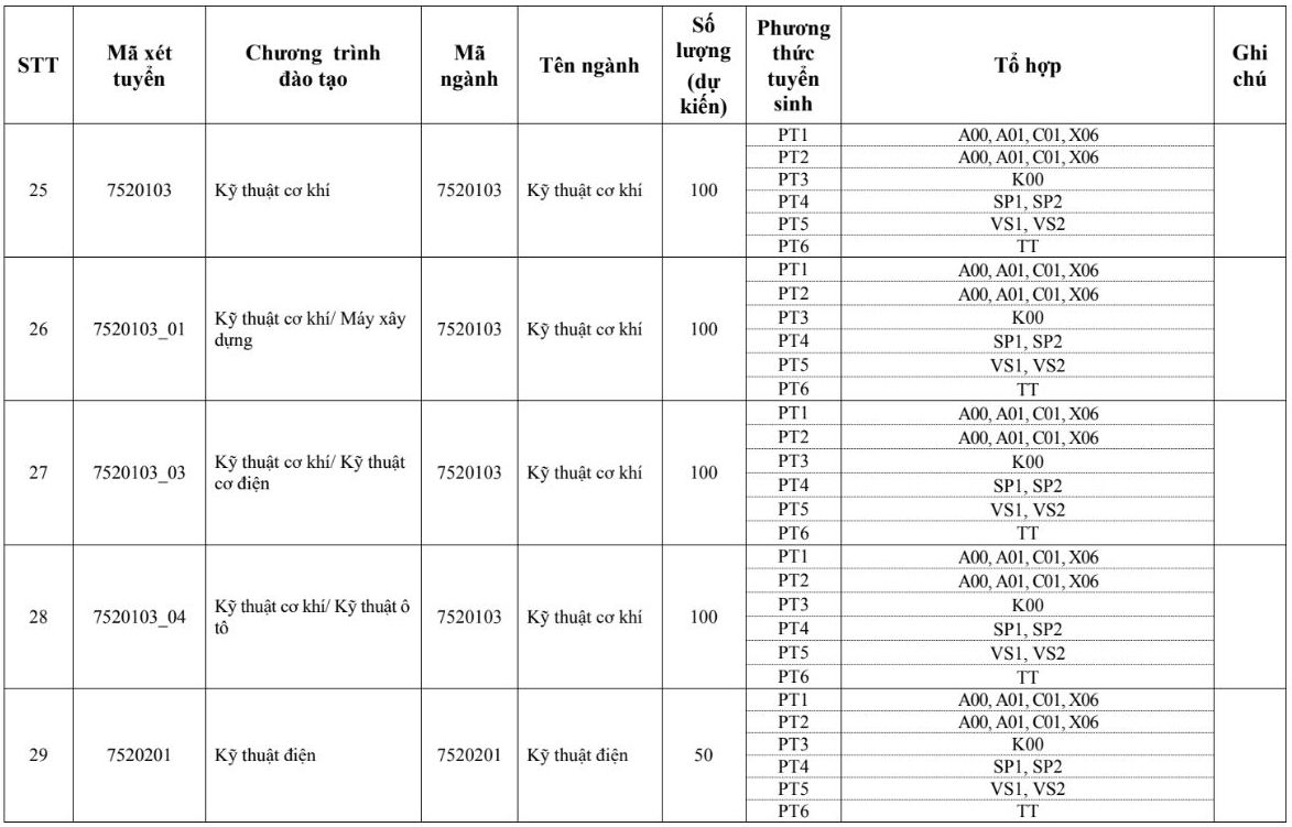 Cụ thể các tổ hợp xét tuyển được trường sử dụng trong mùa tuyển sinh 2026 như sau:
