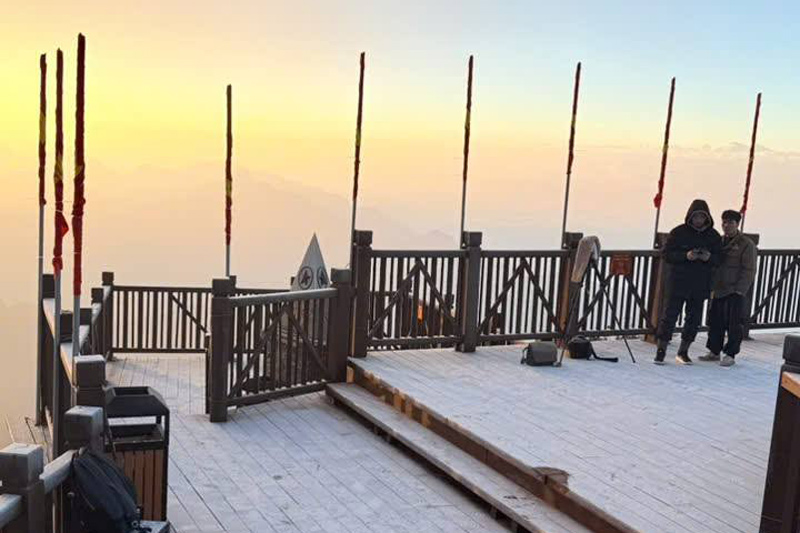 Theo ghi nhận, đến rạng sáng, nhiệt độ trên đỉnh Fansipan chỉ khoảng 1-3°C. Lớp băng bám dày trên bậc đá, lan can và khu vực cột cờ, tạo điều kiện để du khách có thể nắm thành từng mảng nhỏ như tuyết.