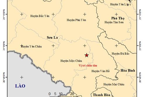 Trung tâm Báo tin động đất và cảnh báo sóng thần, Viện Vật lý địa cầu cho biết động đất vừa xảy ra tại huyện Mộc Châu, tỉnh Sơn La có độ lớn 3.3 độ richter.