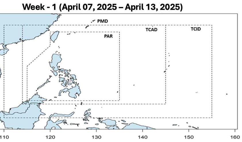 Dự báo trong tuần từ 7-13.4.2025 và tuần từ 14-20.4.2025 cũng không có áp thấp/cơn bão nào xuất hiện gần Philippines và Biển Đông.